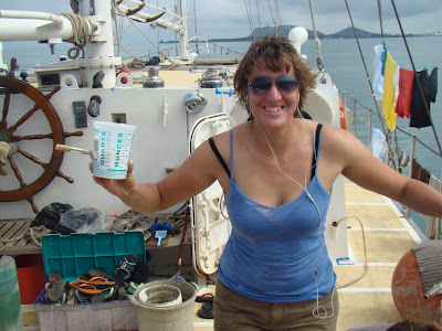 -the crossing equator party when we all went swimming, getting dragged by a line at the back of the boat, and drink a beer magically found somewhere on the boat …